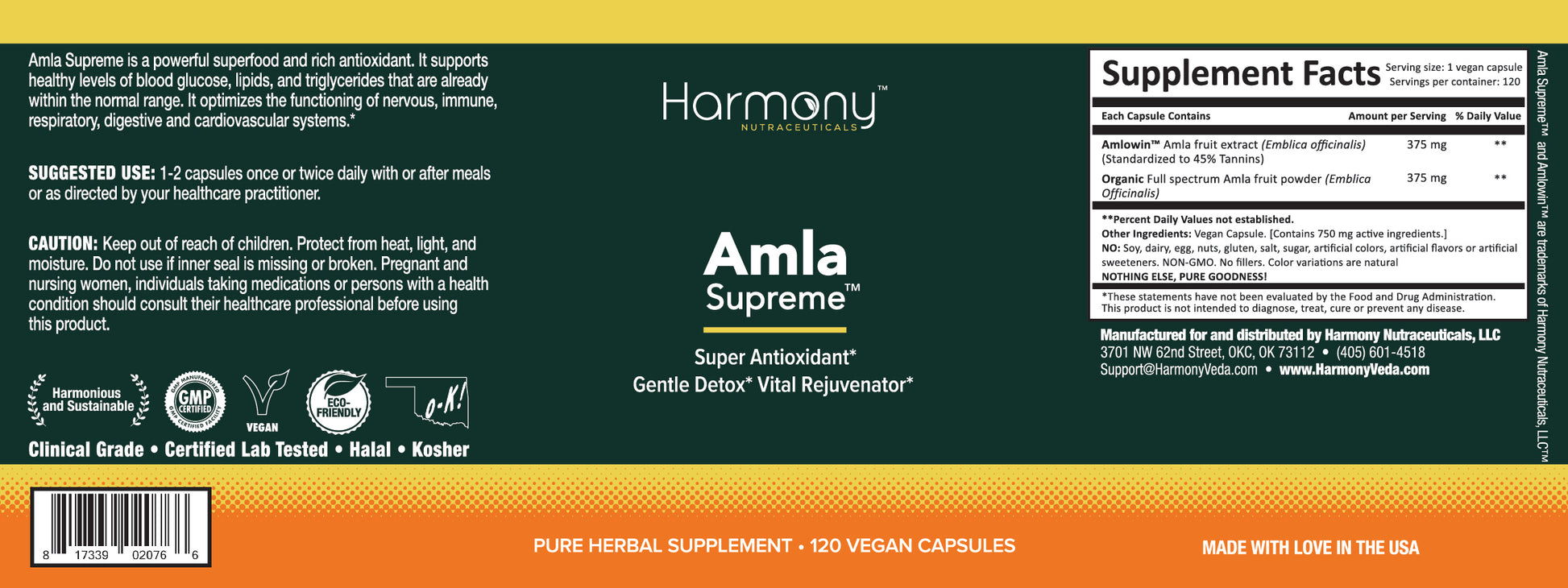 | Amla Supreme is a powerful superfood and rich antioxidant. It supports healthy levels of blood glucose, lipids, and triglycerides that are already within the normal range. It optimizes the functioning of the nervous, immune, respiratory, digestive, and cardiovascular systems.*Classifications\Certifications: GMP Certified, Certified Lab Tested, Halal, Kosher, Vegan, Clinical Grade |