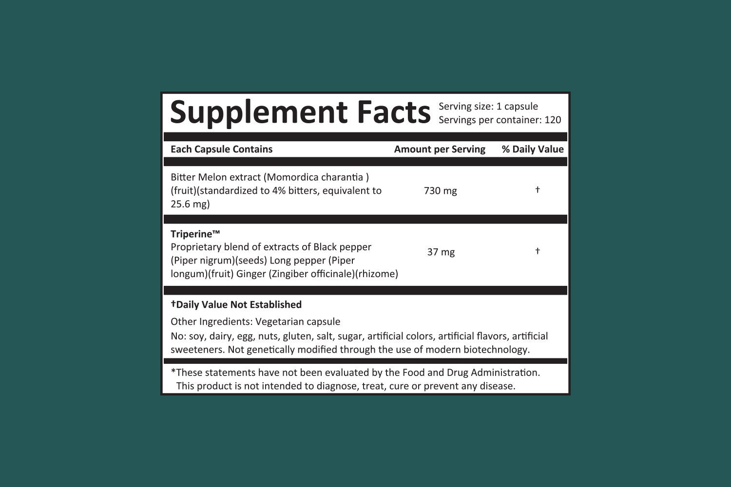 | Bitter Melon has been used for millenniums in Asian and African medicine to support a healthy pancreas and maintain an optimum blood sugar level. Among nature's most bitter foods, it is great for gastrointestinal tract and detoxification.* Bittuwin, our proprietary Bitter Melon extract is fortified with abundant Triperine, a synergistic blend of black pepper, ginger, and piper longum extracts for enhanced absorption, potency, and bioactivity.* Classifications\Certifications: GMP Certified, Certified Lab Tested, Halal, Kosher, Vegan, Clinical Grade |
