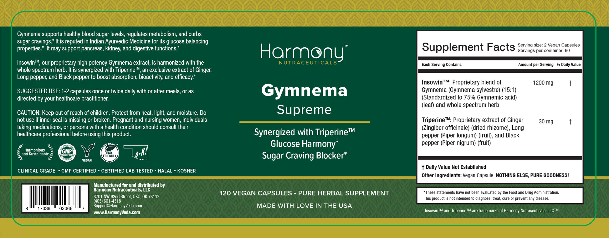 | Gymnema supports healthy blood sugar levels, regulates metabolism, and curbs sugar cravings. It is reputed in Indian Ayurvedic Medicine for its glucose balancing properties. It may support pancreas, kidney and digestive functions.* Insowin, our proprietary high potency Gymnema extract, is harmonized with the whole spectrum herb. It is synergized with Triperine, an exclusive extract of Ginger, Long pepper, and Black Pepper to boost absorption, efficacy and bioactivity.* Classifications\Certifications : GMP Certified, Certified Lab Tested, Halal, Kosher, Vegan, Clinical Grade |